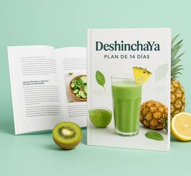 El Plan DeshinchaYa – 14 Días está diseñado para ayudarte a eliminar la hinchazón, sentirte más liviana y recuperar tu bienestar sin pasar hambre ni renunciar a lo que te gusta.